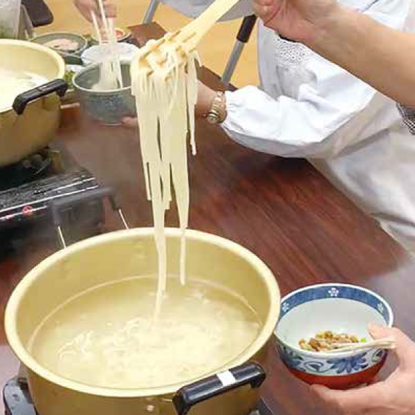 山形内陸地方で主に食べられるうどん料理。茹で上がったうどんをそのまま鍋から引っ張りあげて納豆で食べる。納豆の他にサバの水煮や卵などを入れアレンジして食べることもある。